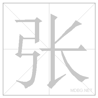 | 张 | zhāng | djahng | 1 | 弓 (bow) + 长 (long) → stretch; sheet | 张 link | ||||||