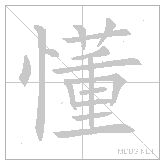 | 忄 (heart) + 董 (supervise) → understand | 心 (semantic) | 董 (phonetic) | phonetic from 董 | ||||||||
