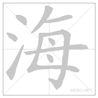 | 海 | hǎi | hye | 3 | 氵 (water) + 每 (each) → sea | 海 link | ||||||