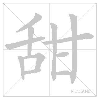 | 甜 | tián | tee:en | 2 | 舌 (tongue) + 甘 (sweet) → sweet | 甜 link | ||||||