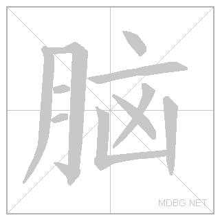 | 月 (flesh) + 囟 (fontanel) → brain | 月 (semantic: body) | 亠 + 凶 (phonetic) | phonetic from 凶 | ||||||||