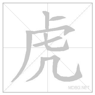 | 虎 | hū | hoo | 1 | 虍 (tiger head) + 儿 (legs) → tiger | 虎 link | ||||||